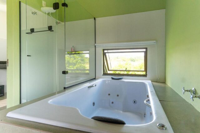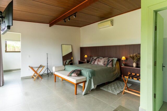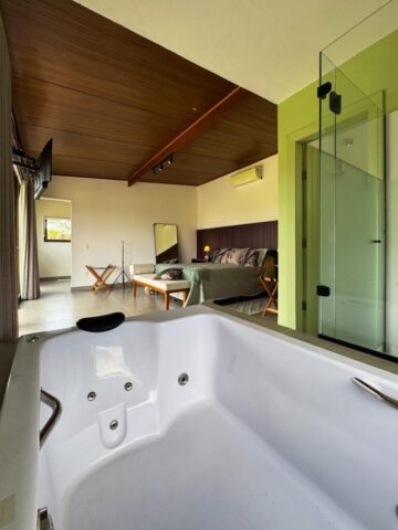 - 1 Suíte com cama confortável, roupas de cama e banho completas, hidromassagem e ambiente climatizado com ar-condicionado.