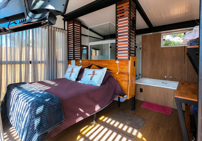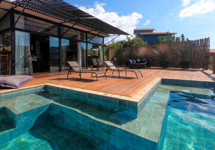 Com um design sofisticado e acolhedor, cada detalhe foi pensado para o seu bem-estar. O espaço conta com cama king size, cozinha equipada, hidromassagem relaxante, piscina aquecida para qualquer hora do dia, além de uma vista deslumbrante que inspira paz. Aqui, você vive uma experiência completa de conforto e serenidade.