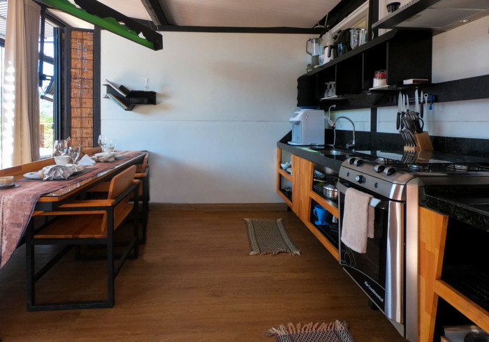 - Fogão e forno a gás, misteira elétrica, microondas, Air fryer.