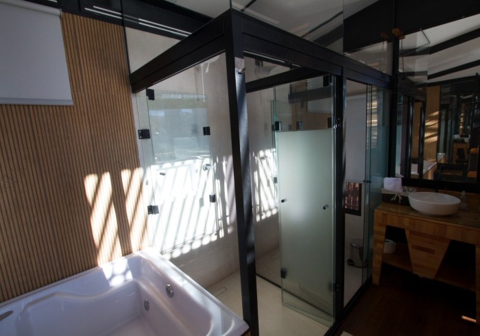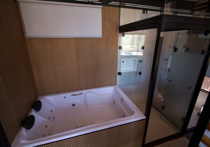 - 1 suíte com vista para o paredão, cama queen size, roupas de cama de alta qualidade, banheira de hidromassagem, secador de cabelo, amenities especiais.