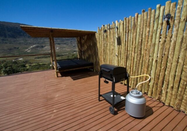 - Churrasqueira a gás e lareira vertical.
