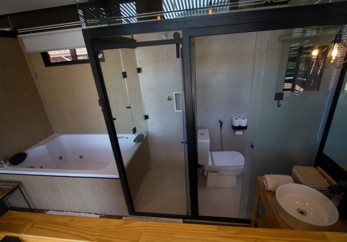 - 1 suíte com vista para o paredão, cama queen size, roupas de cama de alta qualidade, banheira de hidromassagem, secador de cabelo, amenities especiais.