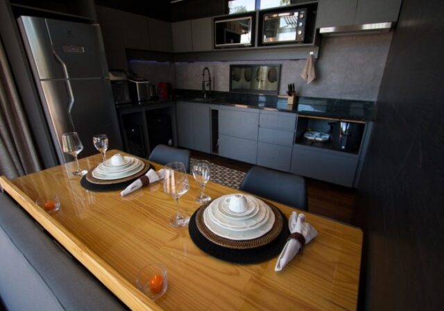 - Fogão e forno a gás, misteira elétrica, microondas, Air fryer.