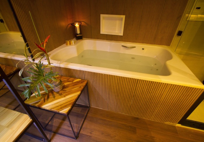 - 1 suíte com vista para o paredão, cama queen size, roupas de cama de alta qualidade, banheira de hidromassagem, secador de cabelo, amenities especiais.