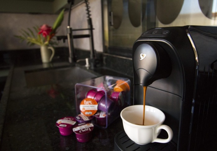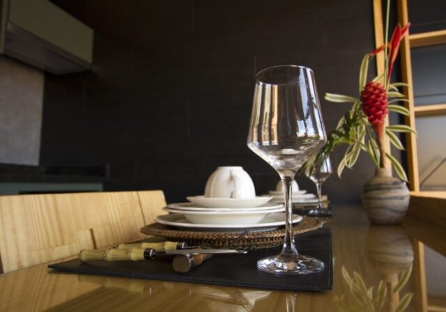 - Geladeira, Liquidificador, Água mineral, Cafeteira, Adega.