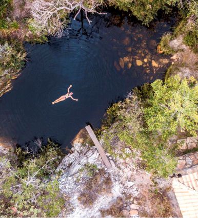 Os lodges BAMBOO, ORQUIDEA E CASA VELLOZIA estão localizados a 12km do centro comercial da Serra do Cipó, que fica na porção meridional da Cordilheira do Espinhaço, em um território marcado por uma geologia milenar, com rochas com cerca de 1,5 bilhões de anos. O acesso faz parte da vivência: a chegada acontece via barco, seguida por uma caminhada leve até o lodge, convidando à desaceleração desde o primeiro instante.
